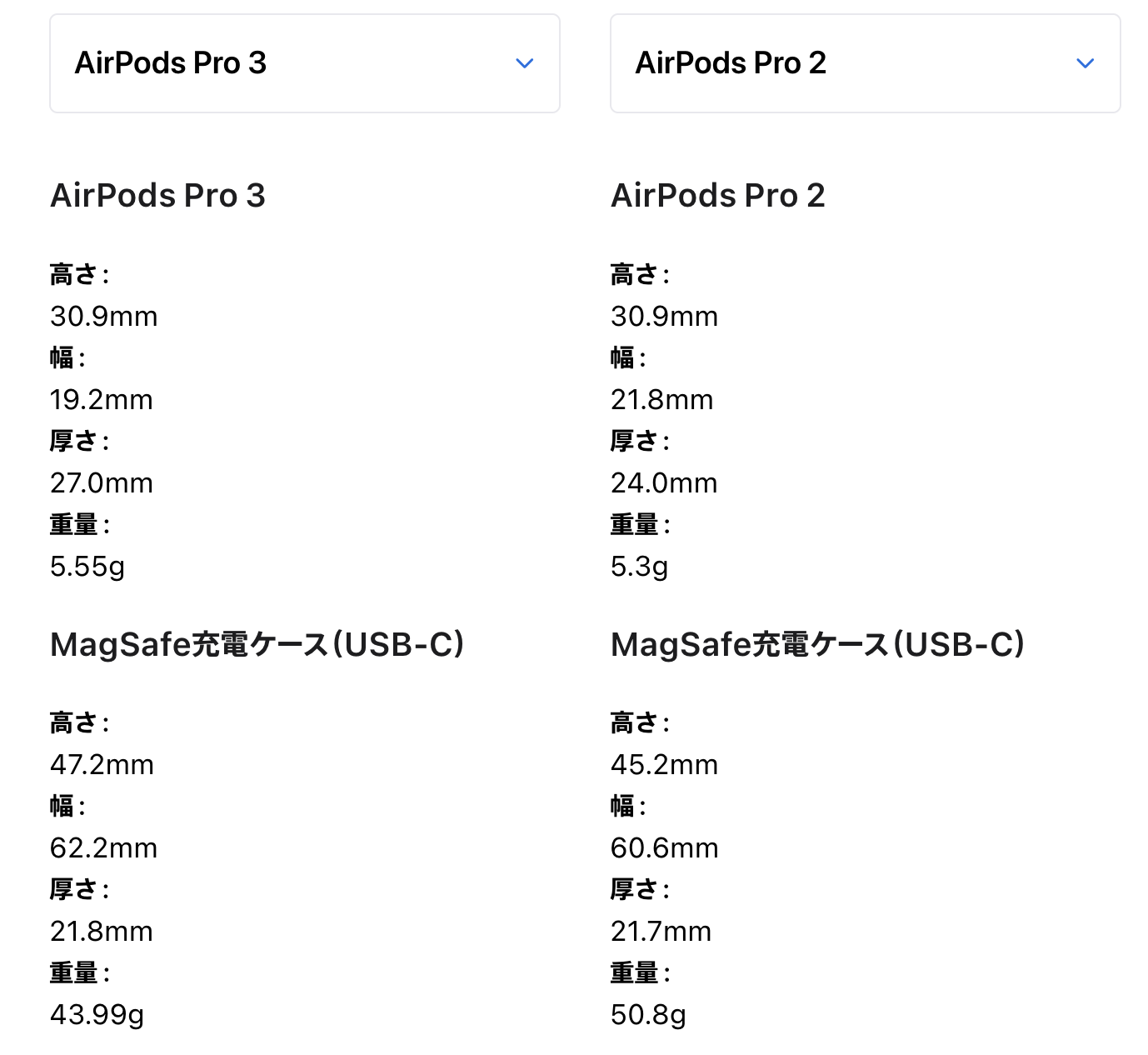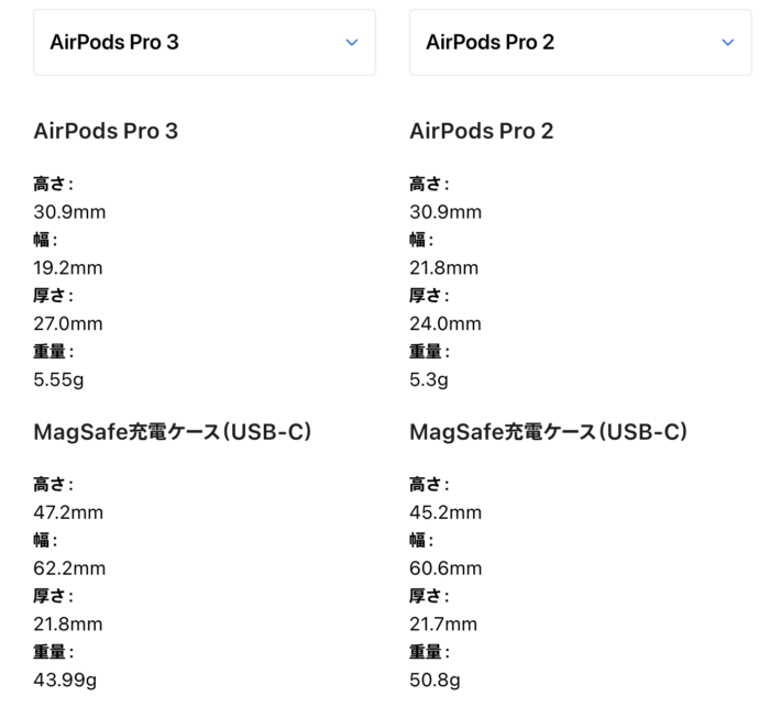 もうひとつ大きな残念ポイントは、チップがH2のままで変わらず。ここはH3になるという噂だったのでだいぶ残念です。チップが変わらないということは、ソフトウェアで対応できる基本的な機能はAirPods Pro 2と変わらないと思っていいかと思います。