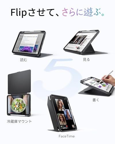 無印iPadは家族用なのでカバーはフルにプロテクトできるESRのFlipシリーズを購入しました。これは縦置きもできるため非常に使い勝手が良いです。無印用とAir用しかないので、Proシリーズ用にも出して欲しいくらいです(ProシリーズはShiftシリーズがありますが、ちょっと重い)。