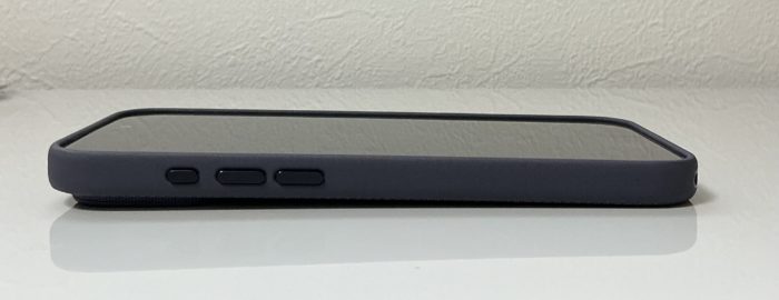 手持ちのiPhone 16 Pro Max に装着して持ってみたところ、グリップ力はいいです。側面はサラサラして滑りやすいかなと思ったのですが、滑る素材ではなく握りやすくなっています。たださすがにシリコーンケースのグリップ力には敵いません。ポケットへの入れやすさはテックウーブンケースの圧勝です(シリコンはグリップ良すぎてポケット内で引っかかったりするので)。